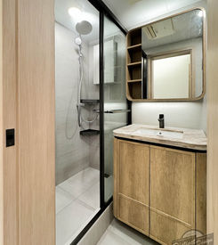 繼上次嘉峰臺全屋翻新後,又接到新的嘉峰臺客戶將單位交托給DD啦!入屋右手邊便是以木紋配搭型格灰綠色的玄關櫃,以及接駁著轉角位的開放式廚房和延伸出窗台櫃,靠牆更加設了屏風日後放置鳥籠。全木紋設計的L形電視牆就連接著暗門Panel,將入口收藏後令完整感提升。而三間睡房分別都有著重點顏色:沉實灰色的主人房;青春粉色的女房;乾淨白色的睡房。