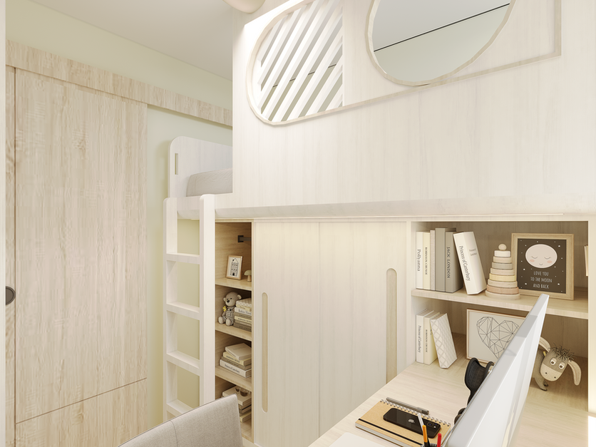 380呎居屋大門口旁傢俬間房|書房兼客房兩用|隱藏床|特色牆連隱藏門|居屋設計 全屋裝修 訂造傢俬|兩房一廳|微輕奢風格|Distinct Design