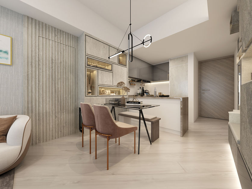 《一人之境.現代簡約》|現代簡約設計|居屋奇則 石紋與直線條 空間感佈局|高宏苑 Ko Wang Court|380 sq. ft|居屋設計|Distinct Design